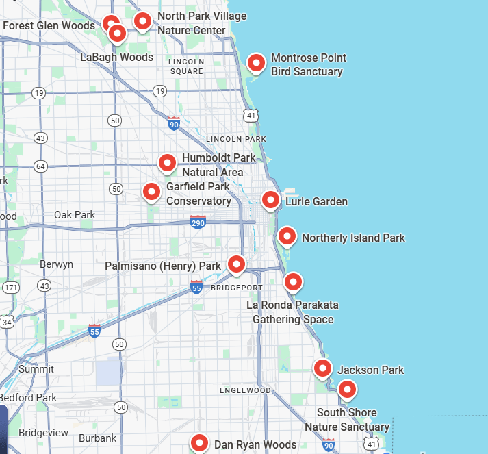 Connecting with nature can promote our sense of calm, awe, and wonder. Here is a map of some of the larger nature spaces around Chicago that I personally have enjoyed.